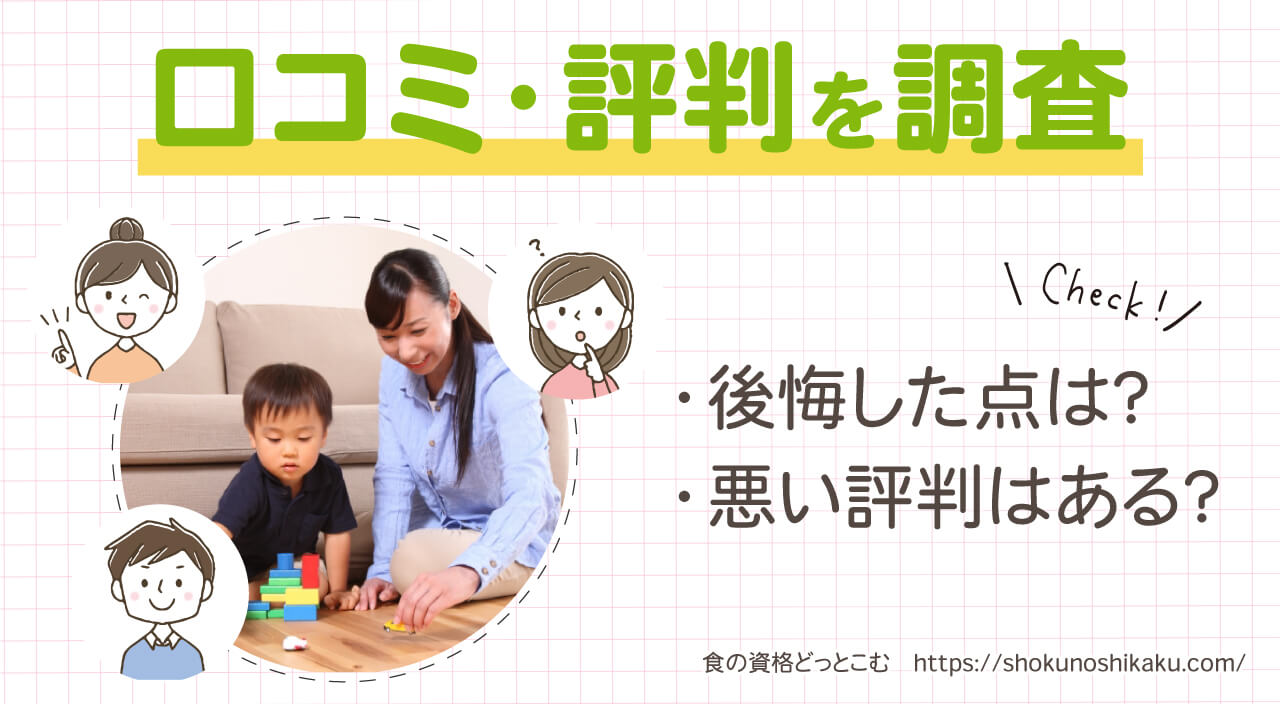 ところがまだ発売されたばかりでそもそも受講生が見当たらなかったため、子育て分野で似ている「子育て心理アドバイザー」の口コミや評判を紹介します。